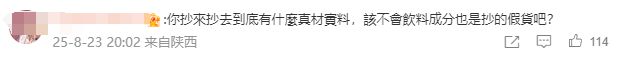 对品牌主业也产生了不信任情绪:“你抄来抄去到底有什么真材实料,该不会饮料成分也是抄的假货吧?”